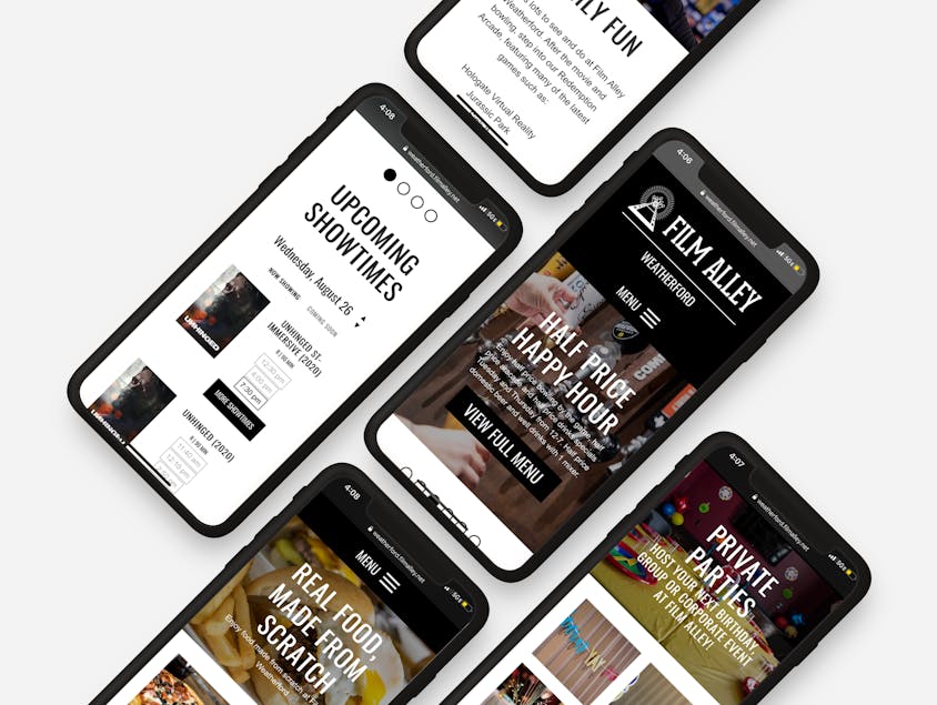 At some of their locations, dine-in options were offered. Using highly engaging food photos and an organized approach to their menu, we were able to restructure the brand's menus across locations to ensure that food was not an oversight by customers visiting each location. In March of 2020, Schulman Theatres shut down due to COVID regulations. During this time, we redesigned the brand's website in preparation for re-opening with the user in mind. Post-redesign, the website saw decreases in bounce rate, higher pages per session and more movie tickets sold.